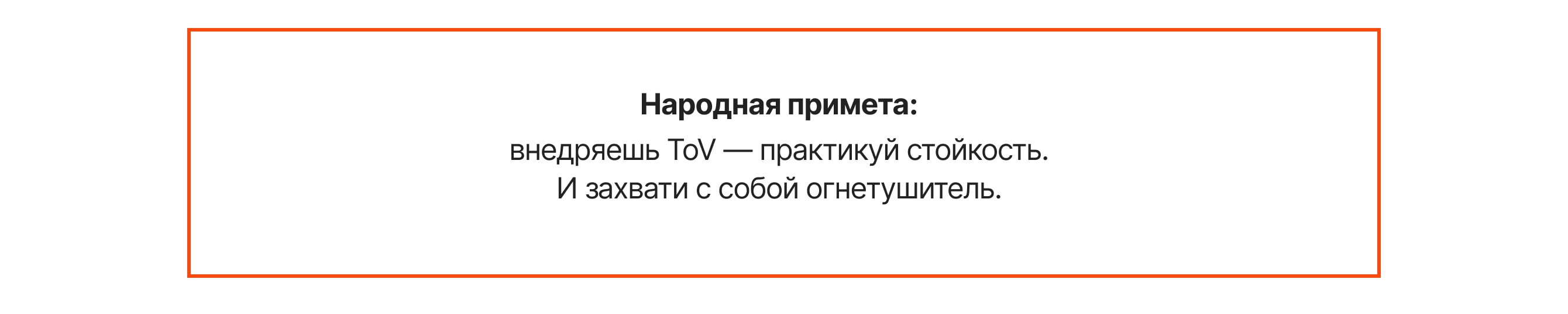 А ещё ToV стал подстраховкой на будущее: если кто-то от клиента придёт и скажет, что так писать нельзя — мы покажем документ, подписанный всеми сторонами.