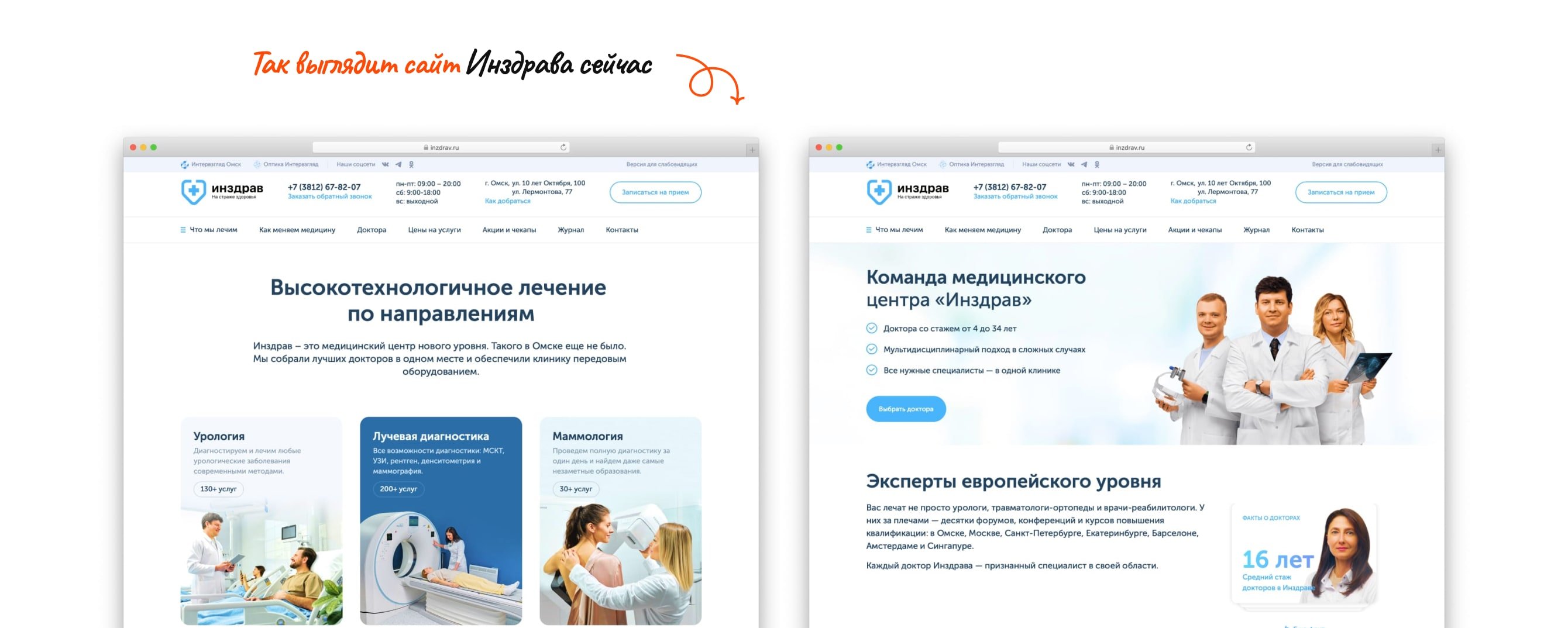 Клиент — современный многопрофильный медицинский центр Инздрав, который находится в Омске.