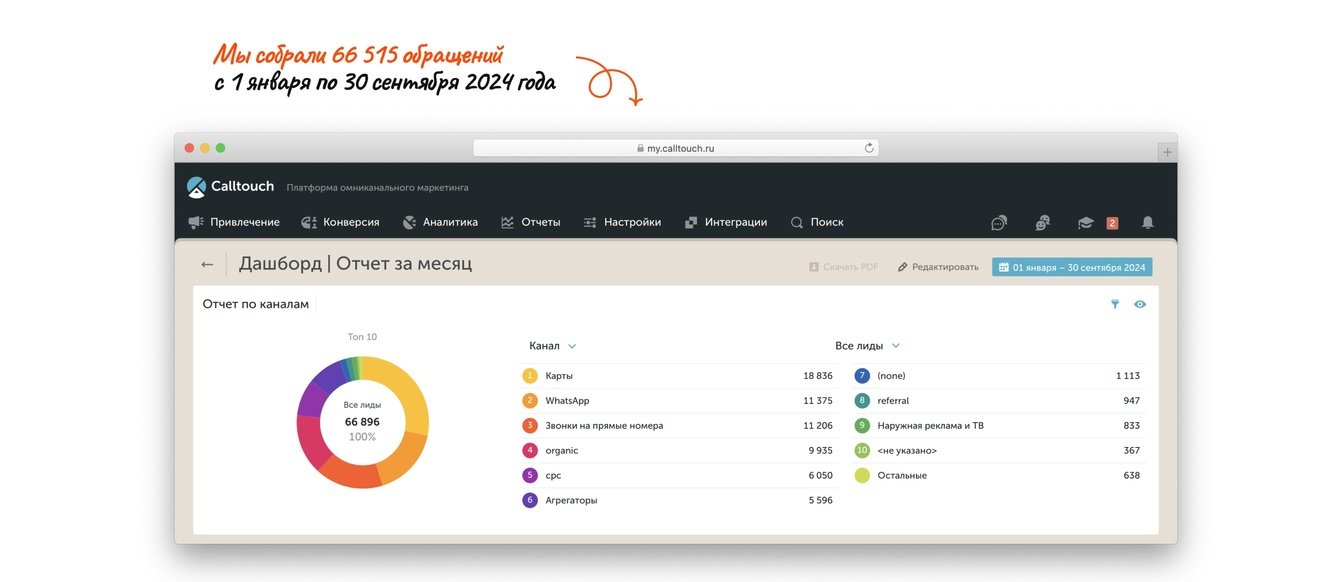 2. Примерно за год Инздрав вышел на самоокупаемость. И такой результат дорогого стоит — обычно на раскрутку центров подобных масштабов уходит от 2 лет. Если говорить в цифрах, то с 1 января по 30 сентября 2024 года мы собрали 66 515 обращений. Кстати, это также доказало докторам, что маркетинг работает, и все вопросы отпали окончательно.