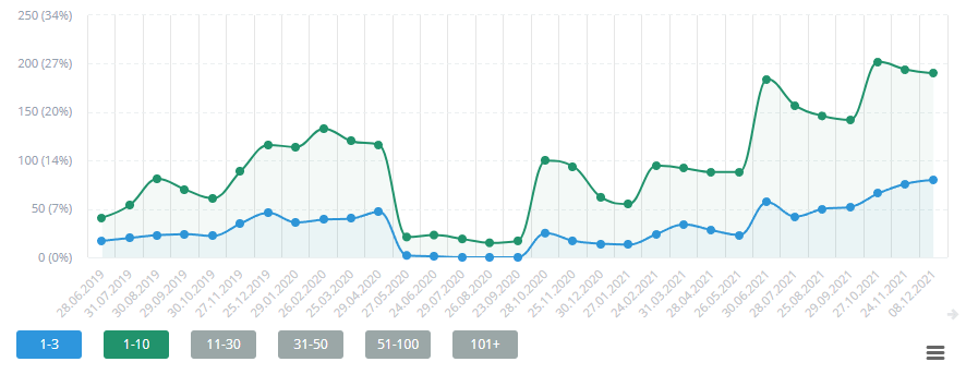 - Основные позиции сайта по ключевым запросам за ТОП-30