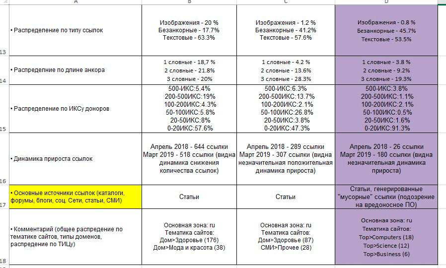 В первые 2 месяца мы провели полный аудит текущего ссылочного профиля, а также проанализировали анкор-лист конкурентов и список площадок, где получили ссылки лидеры ниши.