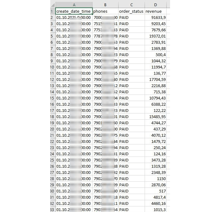 Погрузившись во внутреннюю работу оффлайн магазина, нам удалось получить от клиента данные о покупках, которые фиксировались в программе карты лояльности клиента. Изучив необходимые параметры для загрузки данных оффлайн-конверсий в Яндекс.Директ, команда Lead Zeppelin сгенерировала кастомный файл, который позволяет дополнить статистику рекламных данных о покупках в магазине.