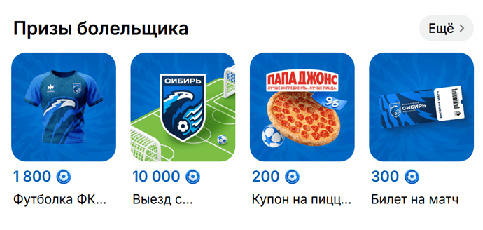 Каталог вознаграждений составлен из того, что действительно ценно и интересно болельщику: