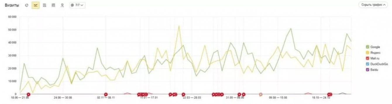 Всего за 6 месяцев увеличили посещаемость сайта с 80 тыс. чел. до 260 тыс чел.