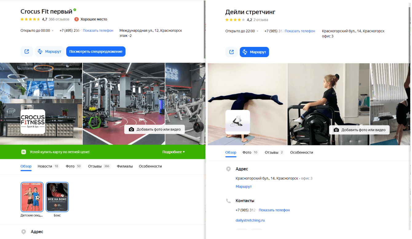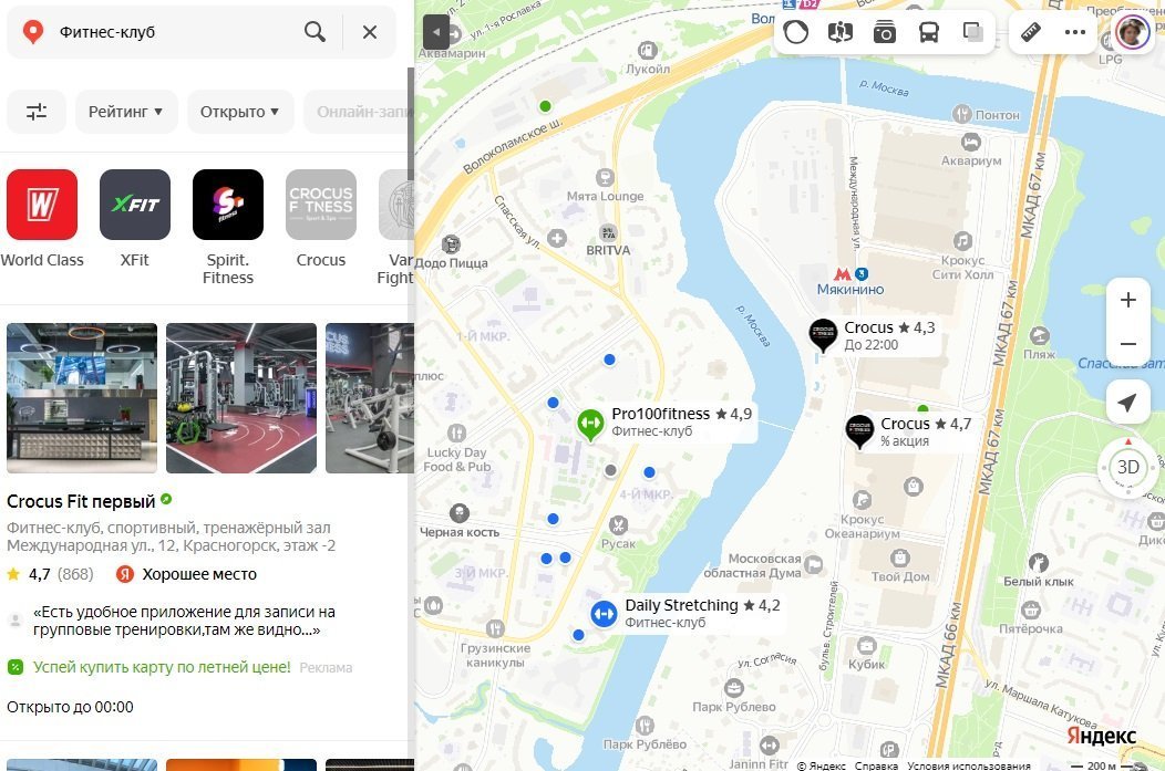 И для работы с такой ЦА Яндекс.Карты оказались отличным решением. Так, брендированное размещение фитнес-клуба на картах закрыло сразу несколько задач: