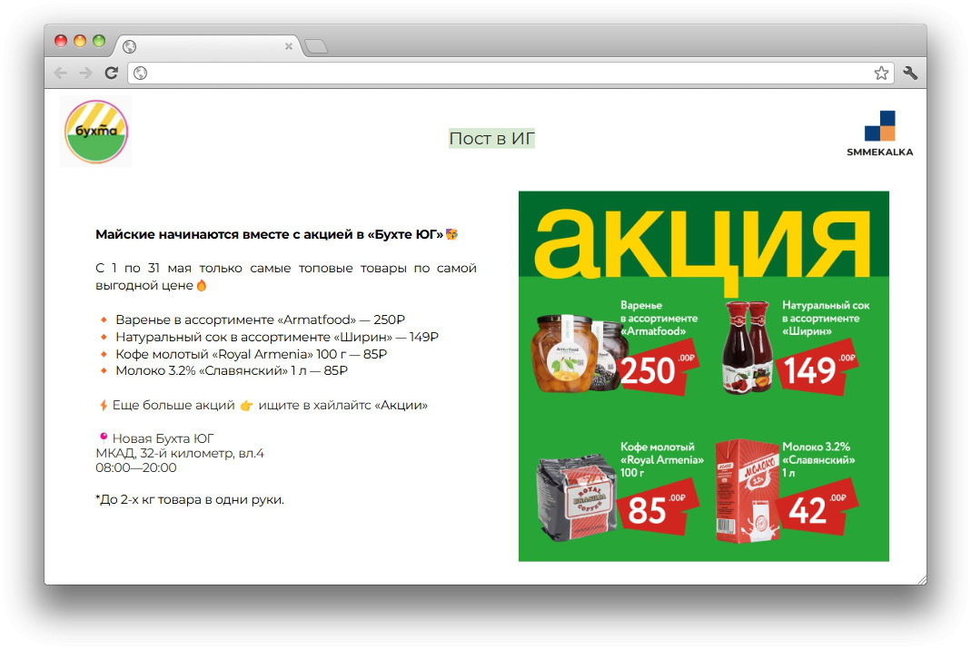 Иногда это были не только акции, но и новости, которые требовали срочной публикации. В этом случае мы убирали несрочный пост из контент-плана и перемещали его на следующий месяц.