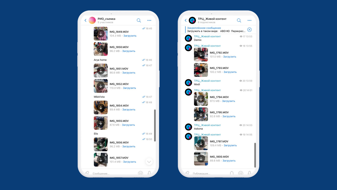 Раз в месяц наш специалист снимал обзоры на магазины и ассортимент, а затем отправлял все видео и фото в специально созданный под это чат.