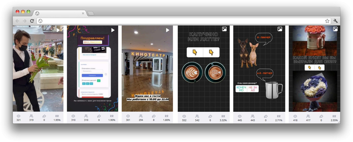 Внедрение опросов и активностей в Stories, а также демонстрация живых фото и видео-материалов из ТРЦ позволило увеличить вовлеченность в социальных сетях и создать интерес, стимулируя людей посещать торговый центр.
