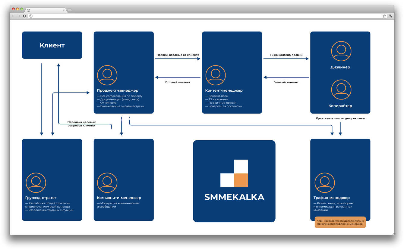Чтобы выпускать контент системно, в первую очередь необходимо наладить процессы коммуникации с клиентом. Считаем это ключевым в своей работе.