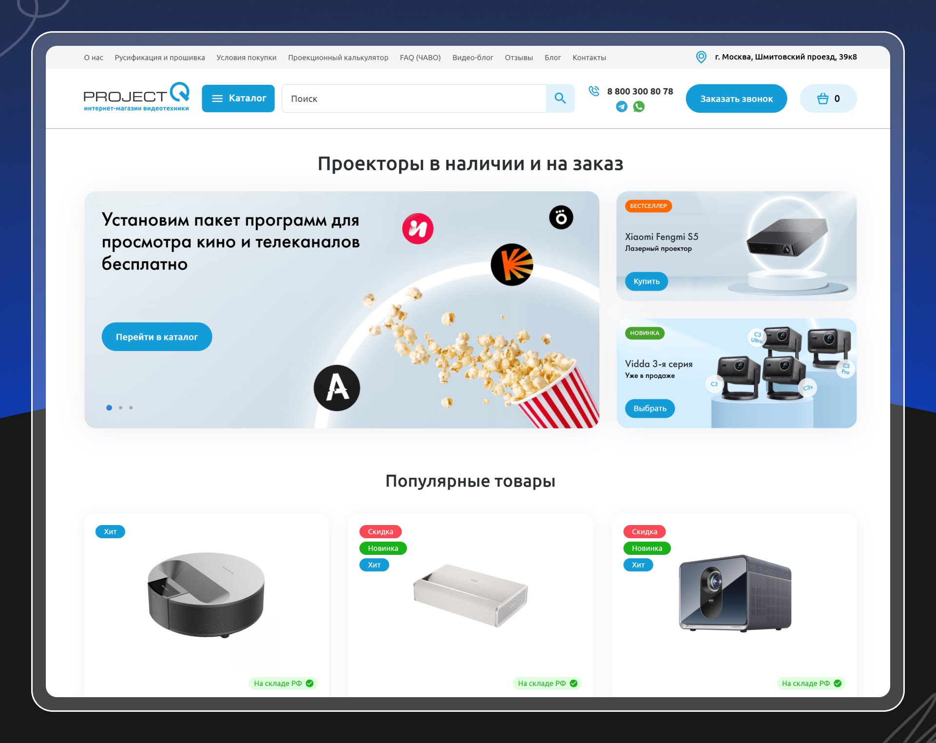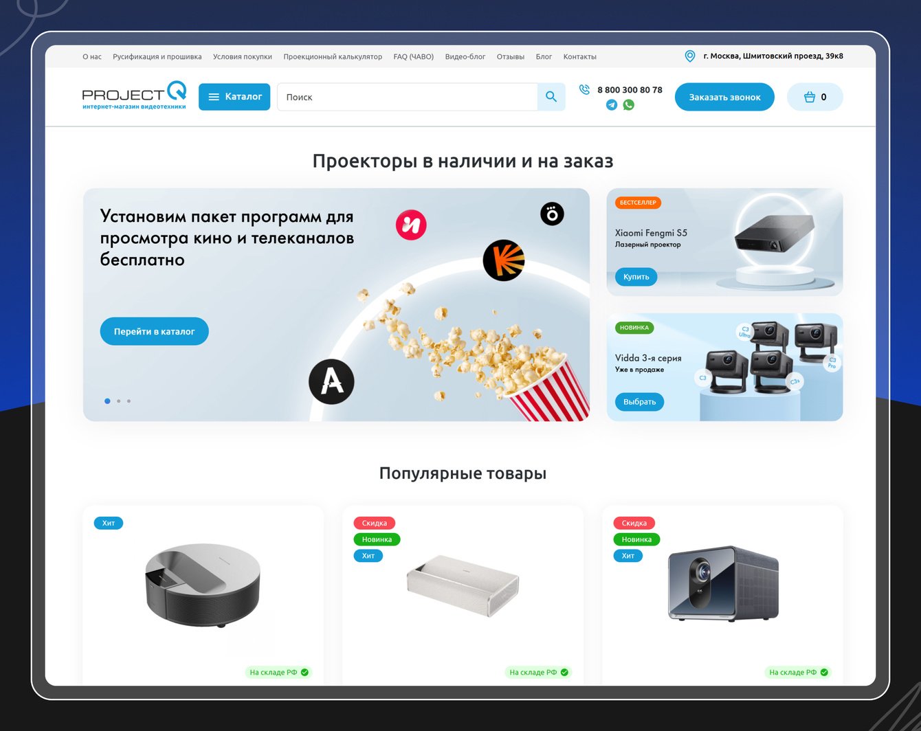 ProjectQ работает на рынке видеотехники с 2015 года и специализируется на проекторах. Мы подключились к проекту больше 4 лет назад. Тогда ниша находилась на этапе формирования спроса: большинство покупателей по-прежнему выбирали телевизоры, а проекторы воспринимали как сложное устройство. Продажи были, но мало и в основном шли через маркетплейсы, Авито. Сайт выполнял роль витрины и почти не участвовал в привлечении клиентов.