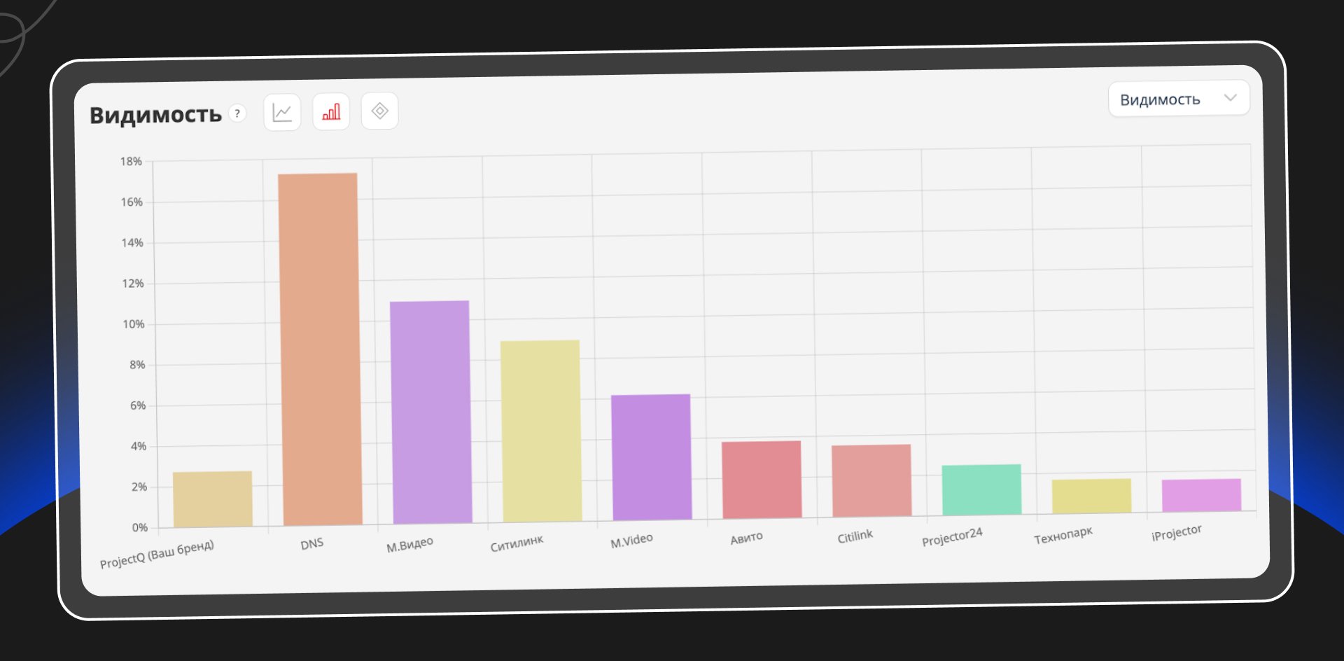 А это видимость брендов в ответах нейросетей по тематическим запросам о проекторах в Пиксель Тулс.