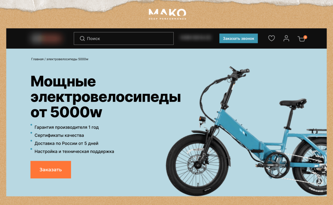 Клиент: интернет-магазин электротранспорта, в ассортименте велосипеды, скутеры и квадроциклы для взрослых и детей.