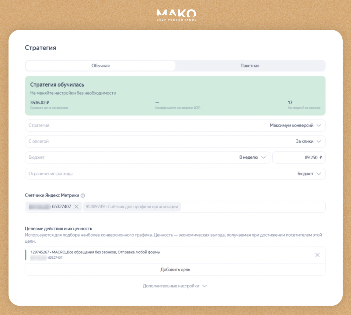 - Возможность оптимизации по целям: от покупки до добавления товара в корзину, обучения автоматики, чтобы привести больше покупателей.