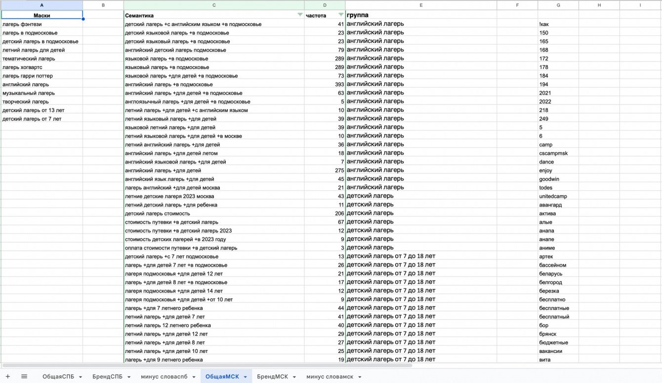 - работа в новом кабинете с возможностью реализации стратегии запуска на лидформы на каждый лагерь в отдельности и закрытием на получение презентации. Данная гипотеза нужна для того, чтобы сократить воронку и при этом отквалифицировать лидов на этапе отправке формы, чтобы не поступали нецелевые лиды до отдела продаж