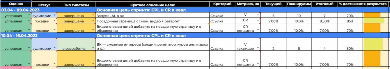 Но ввиду граммотно построенной стратегии в виде регулярной генерации гипотез мы могли получать стабильный поток лидов по ниже чем плановой стоимости, так например в мае 2023 году мы получили