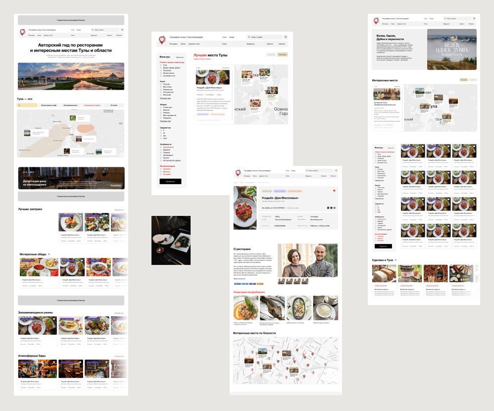 Самым долгим этапом работы стала разработка общей структуры агрегатора и каждой отдельной страницы. Перенести печатный агрегатор в онлайн не так-то просто: в путеводителе каждому ресторану и локации отводилось разное количество страниц, а на сайте нам нужно было унифицировать отображение каждой карточки.