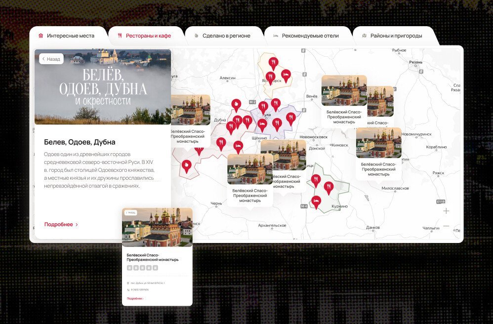 Мы начали путеводитель с Тулы и Тульской области — этот раздел один из самых наполненных. Параллельно добавляются и наполняются новые города.