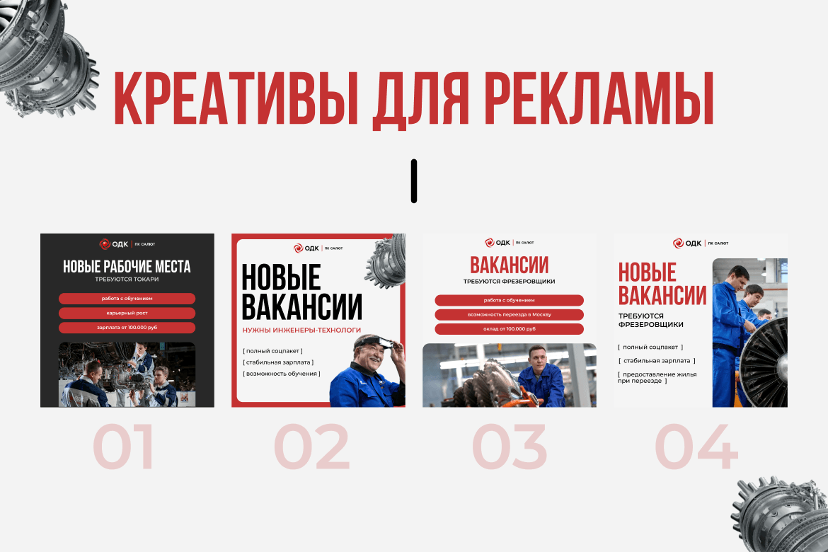 Цель: обеспечить устойчивый отклик от кандидатов разной квалификации (рабочие) для производственного комплекса в сложной локации и ограничениях на размещение кадровой рекламы на охватных оффлайн носителях.