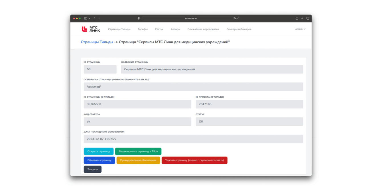 3. Нужно было сохранить возможность создавать/редактировать страницы через Тильду, но забирать их на наш сервер при необходимости для доработок;