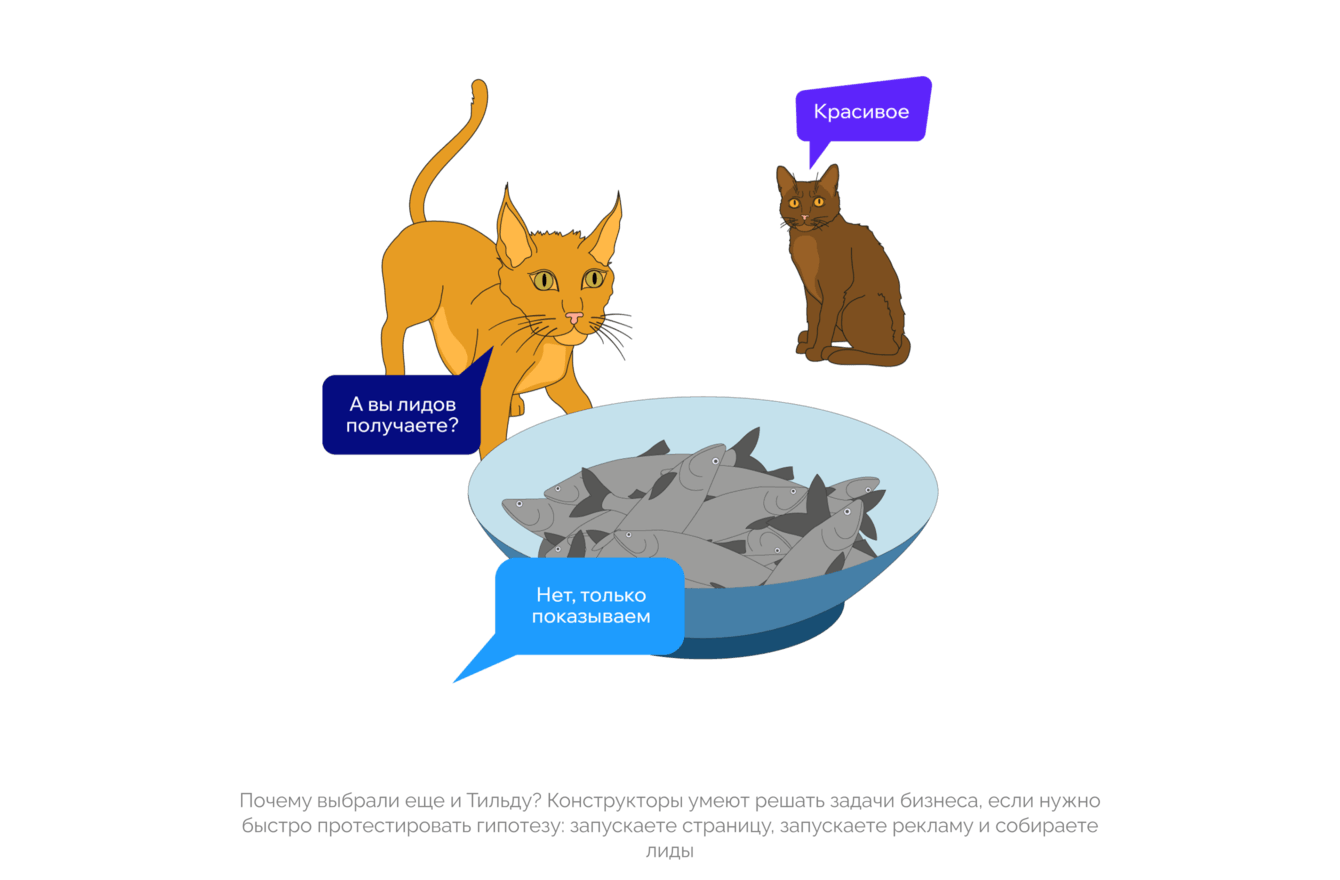 Большинство страниц спокойно собираются и тестируются без разработчиков, а значит, низкий прайс на работу с сайтом остается, а заказчик платит только за те страницы, которым нужна магия. Тильда используется под некоторые посадочные, для А/Б тестов и экспериментов и полностью себя оправдывает.