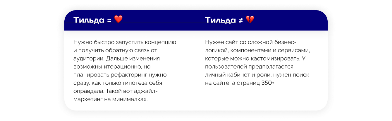 — Когда потребуется добавить к Тильде еще одну CMS и настроить уже ее, чтобы было и гибко и быстро;