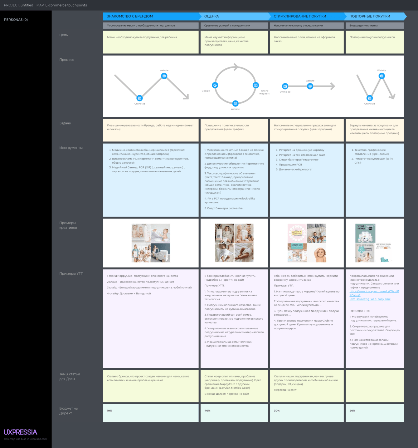 Cогласно CJM с ориентацией на новых покупателей и мотивации первой покупки. Составили отдельные виды УТП с ответами на запросы мам и отработкой возражений.