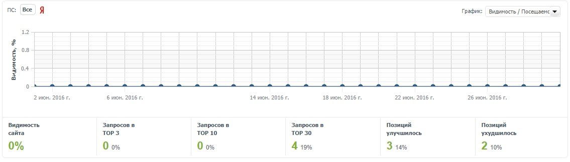 На старте работ ни по одному из запросов сайт не входил в ТОП-10.