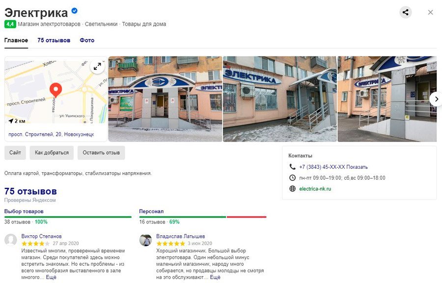 Проанализировав поисковую выдачу, мы приняли решение сделать особый упор на то, как представлена компания в картах. Для каждого магазина создали отдельные карточки, максимально подробно заполнили информацию, добавили фото и дали задание клиенту по сбору отзывов от покупателей.