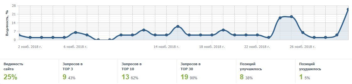 В настоящее время мы ведём работы, поддерживающие достигнутые результаты, и не позволяем сайту опускаться в выдаче в результате апдейтов и запуска новых алгоритмов поисковых систем.