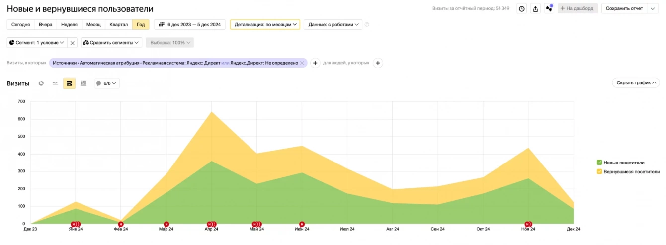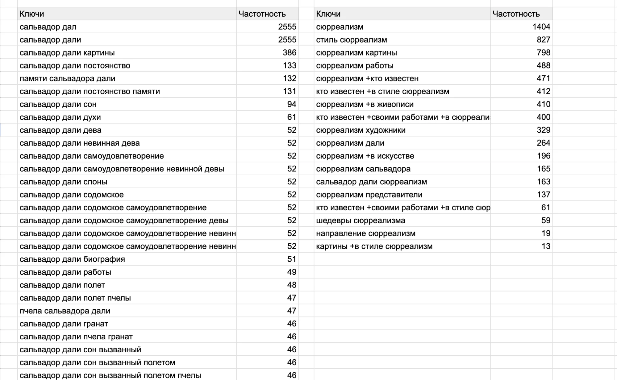 Важно отметить что семантика собиралась в отсутствии спроса, и иногда до старта выставок, из чего следует, что целью первых этапов наших кампаний было оповещение аудитории и создание спроса.