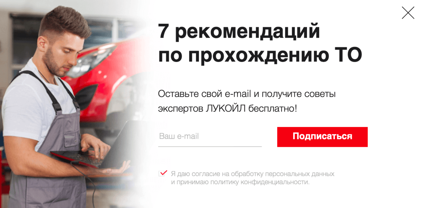 Мотивировали подписаться на рассылку b2c-клиентов — бесплатные советы экспертов «ЛУКОЙЛ» по прохождению ТО.
