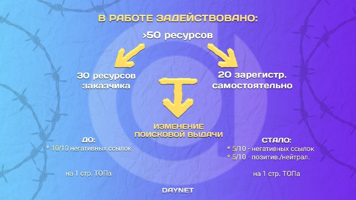 — Снизили количество негативной информации с 10/10 ссылок на первой странице поисковой выдачи до 5/10.