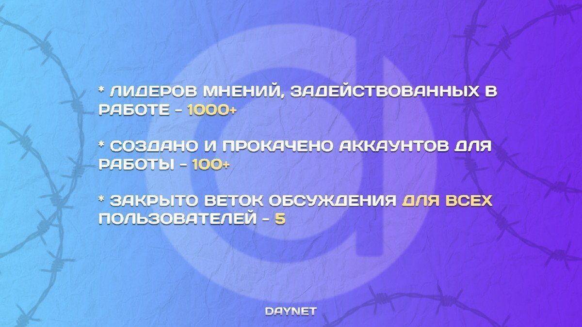 — Количество аккаунтов и лидеров мнений задействованных в работе 1000+;