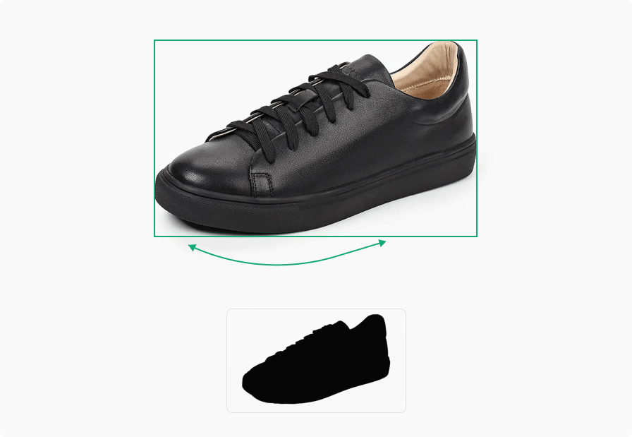 Изображение обуви в профиль загружается в сервис и автоматически обрабатывается нейросетью, которая отделяет объект от фона.