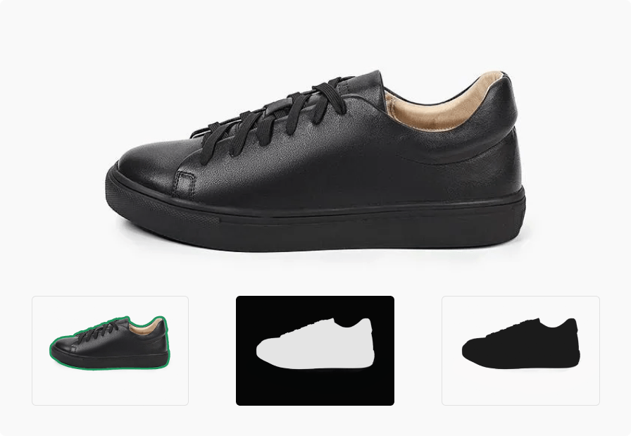 — Удаление фона. Сегментирует изображение с помощью функции для удаления фона. На фото остается только обувь с альфа‑каналом для прозрачности.
