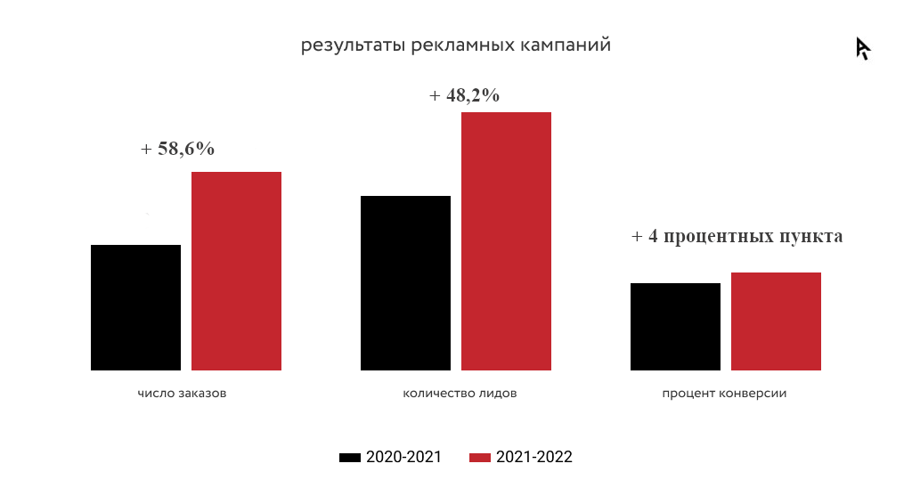 Мы начали проект в сентябре 2021 года, к концу месяца закончили аудит и запустили новые инструменты, все рекламные кампании работали до конца декабря 2021 года. Перед Новым годом и во время праздников решили оставить только медийную рекламу, поскольку в этот период заинтересованность аудитории и количество заявок стабильно снижаются — клиенты отдыхают и не планируют крупных заказов. С середины января 2022 года мы вернули все рекламные кампании.
