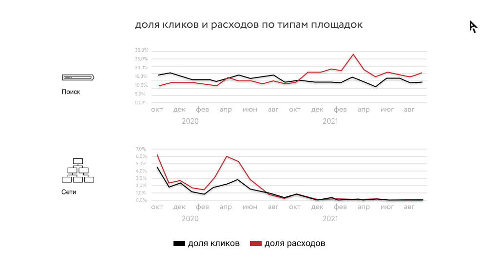 До сентября 2021 года мы совместно с командой клиента уже тестировали инструменты контекстной рекламы: