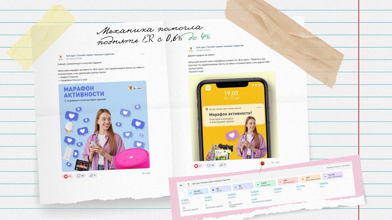 Одной из целью работы с проектом было вовлечение: необходимо было поднять показатель ER, что также бы способствовало увеличению касаний аудитории с компанией и повышению лояльности пользователей.