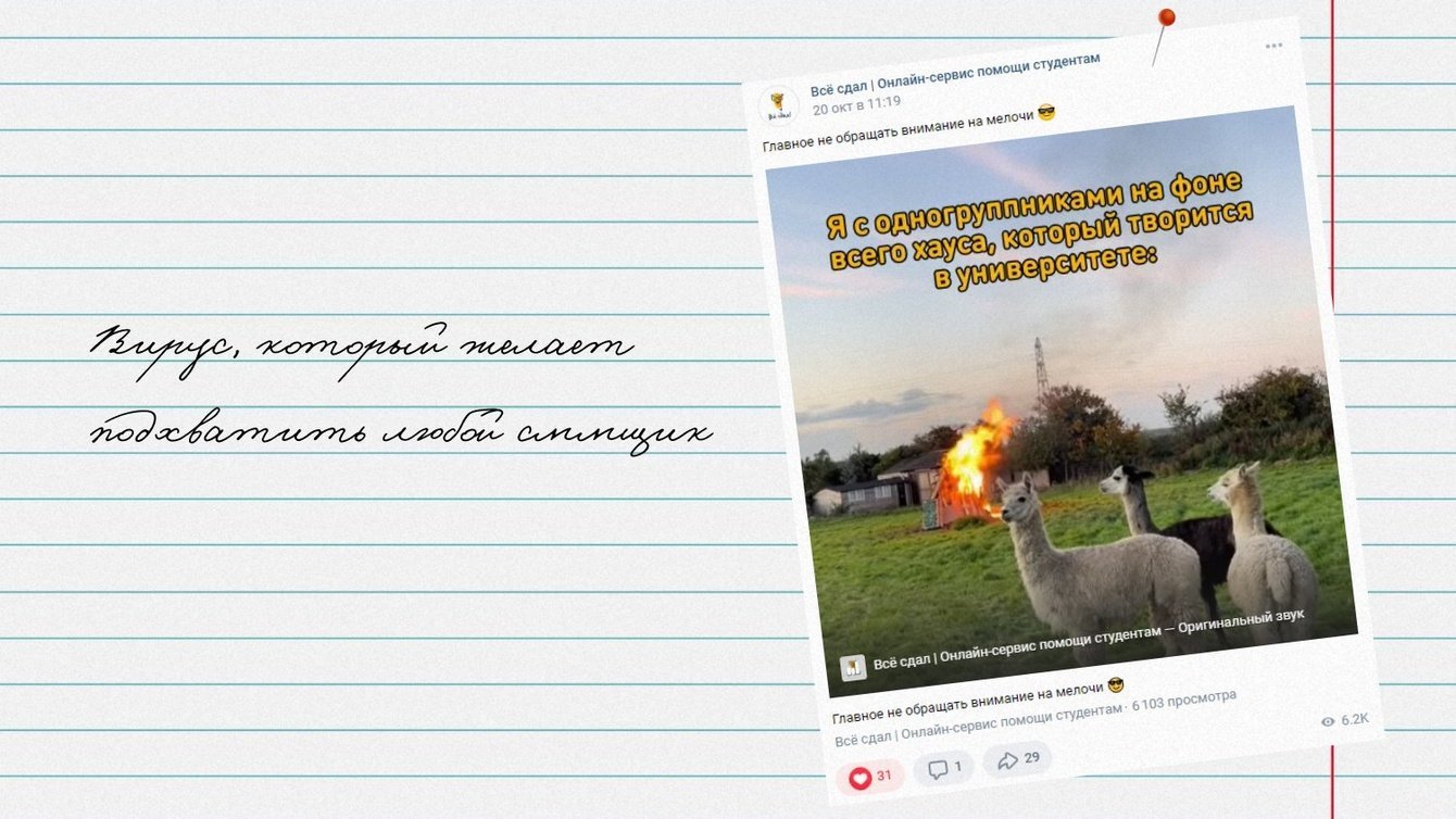 1. Мы активно шутили и делились мемами на актуальные студенческие темы.