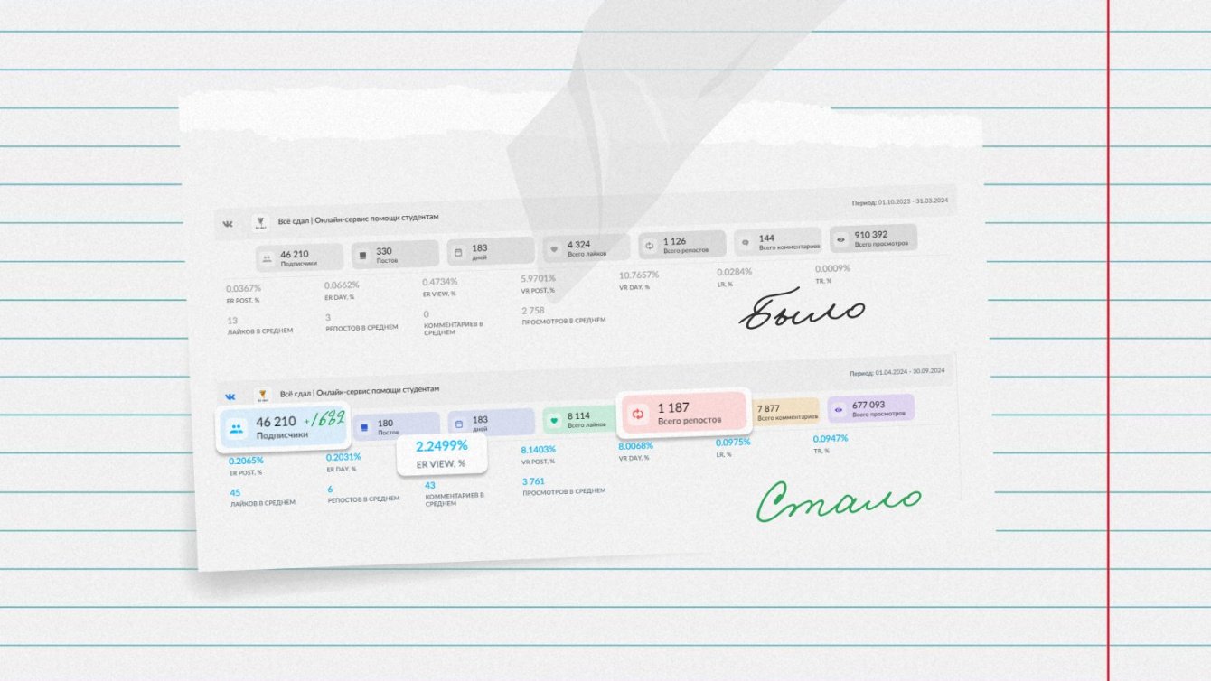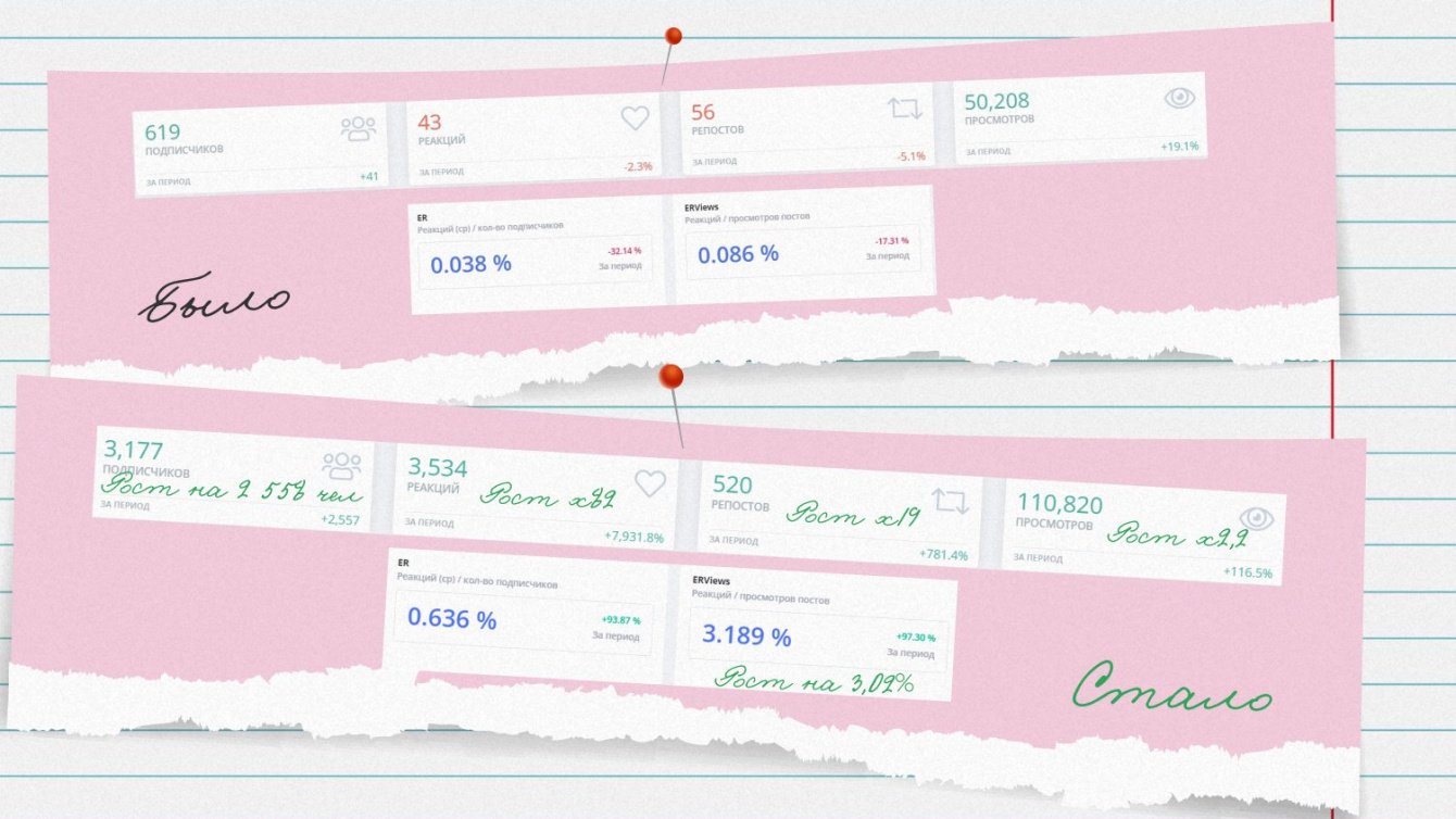 С проектом суммарно мы сотрудничаем более 6 месяцев, за первое полугодие нам удалось существенно поднять все ключевые SMM-метрики в двух основных соцсетях — ВКонтакте и Telegram. Сравнительный анализ ниже приведен за время нашего сотрудничества и за аналогичный период до него.