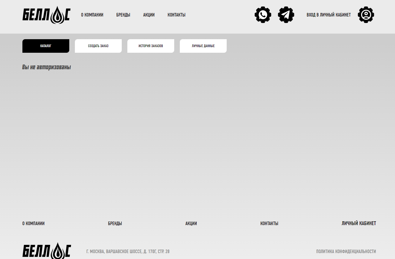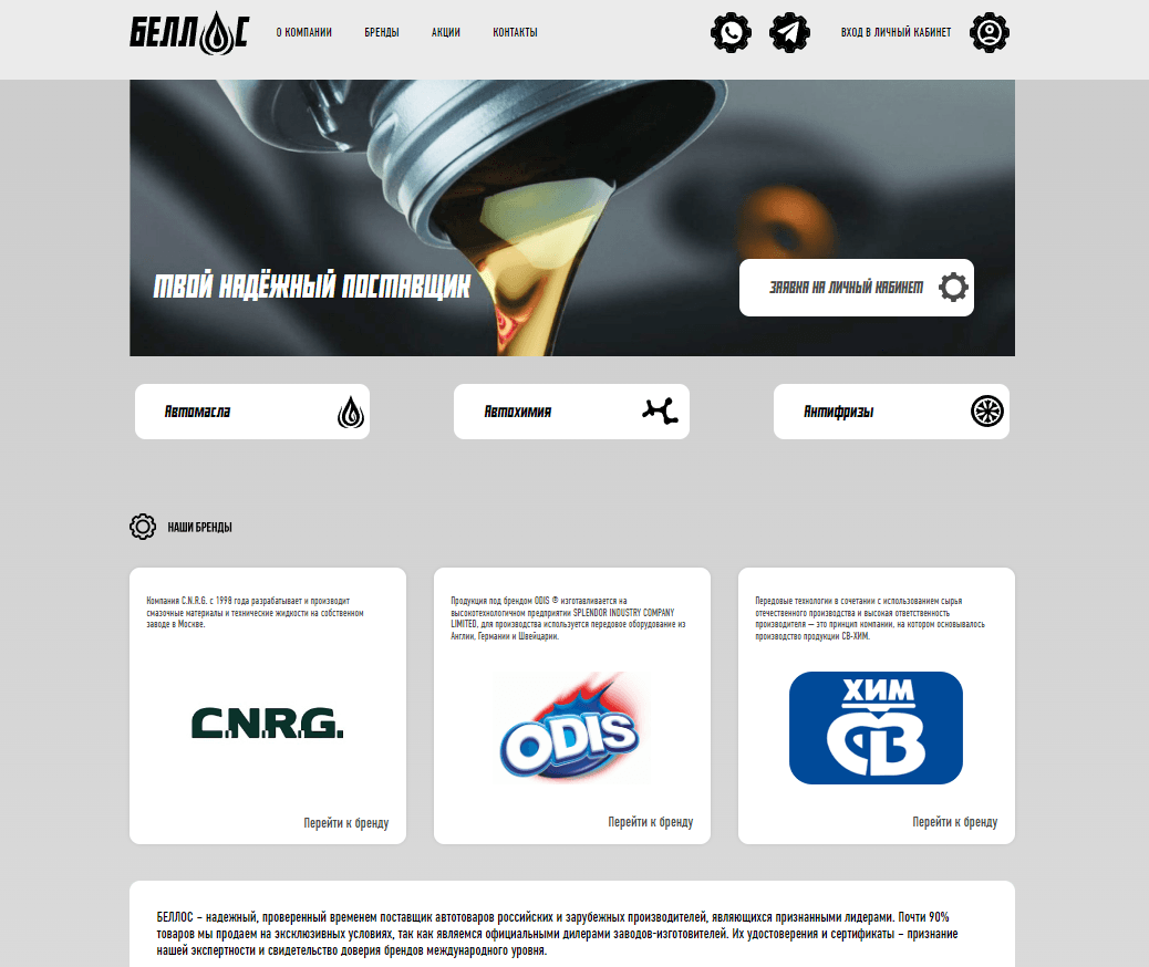Наша команда создала портал для заказа оптовых поставок масел. Такие возможности для развития продаж получила компания Беллос: