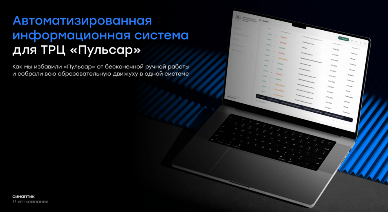 ТРЦ «Пульсар» проводит различные образовательные мероприятия как на региональном, так и на всероссийском уровнях. Им необходимо оперативно обрабатывать большое количество заявок, собирать документы участников и управлять информацией о проведении мероприятий. Разрабатываемая система должна поддерживать различные типы пользователей, включая сотрудников, преподавателей и участников мероприятий.