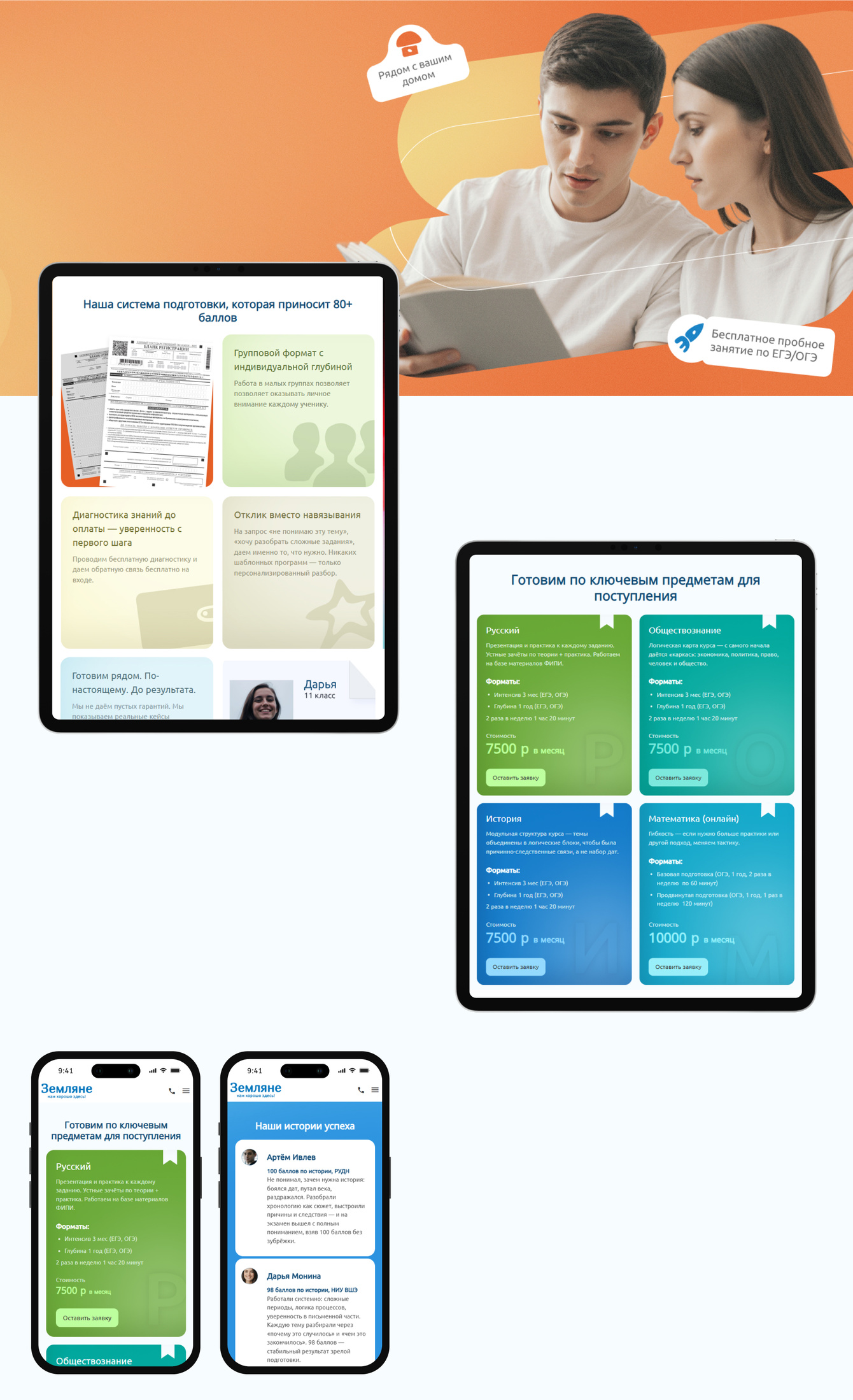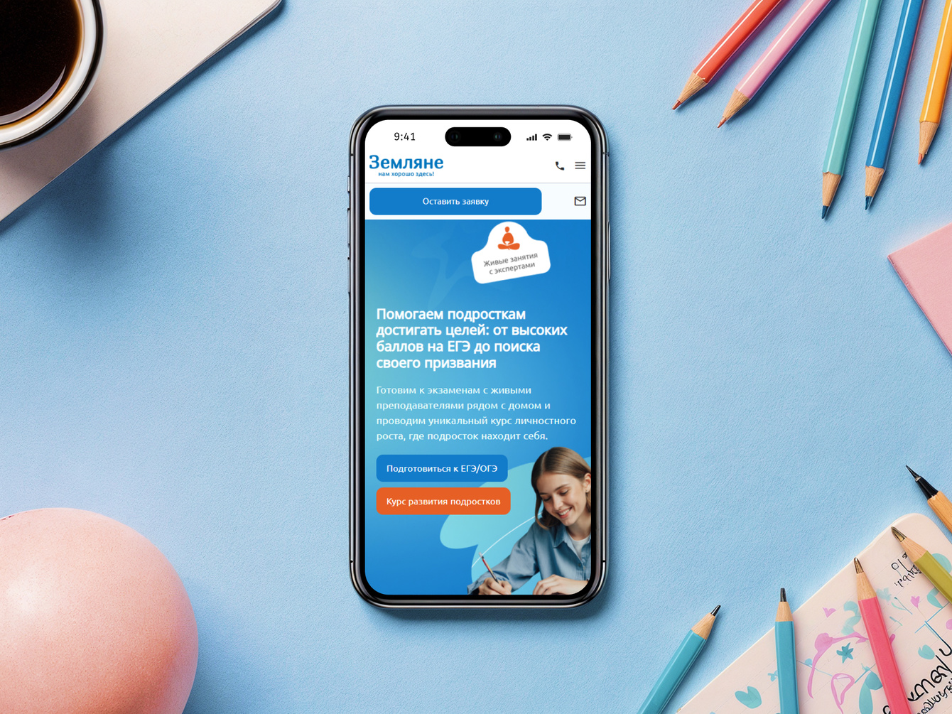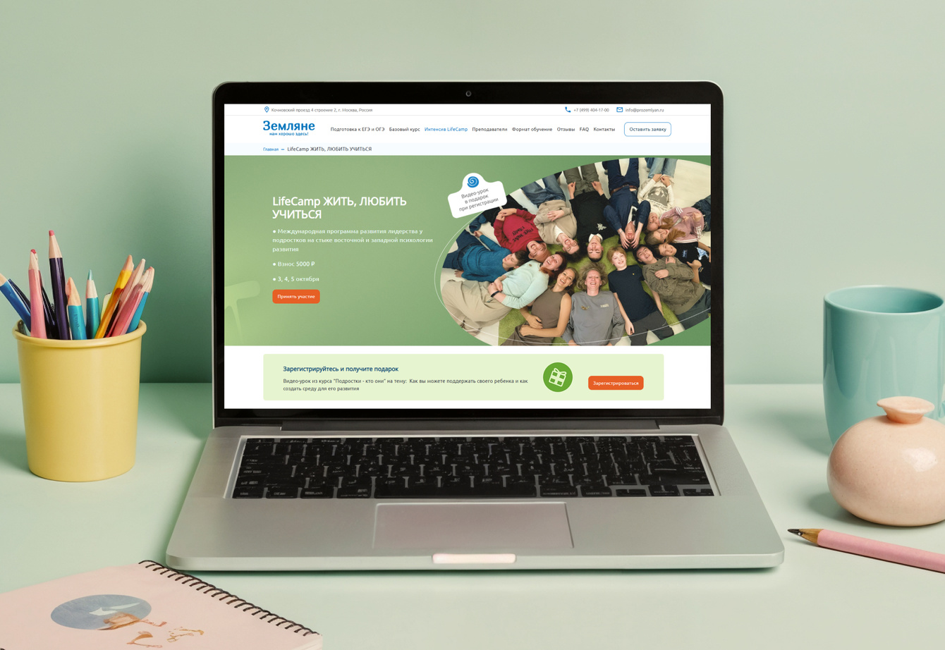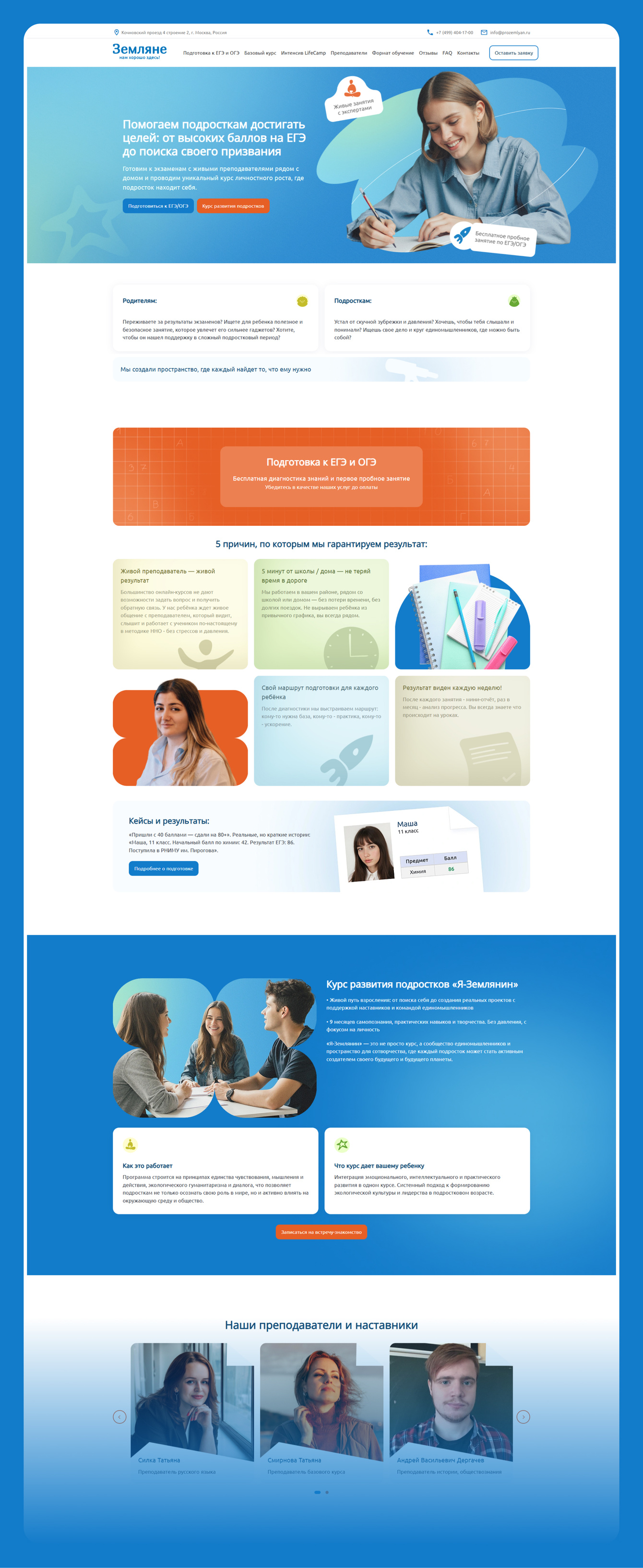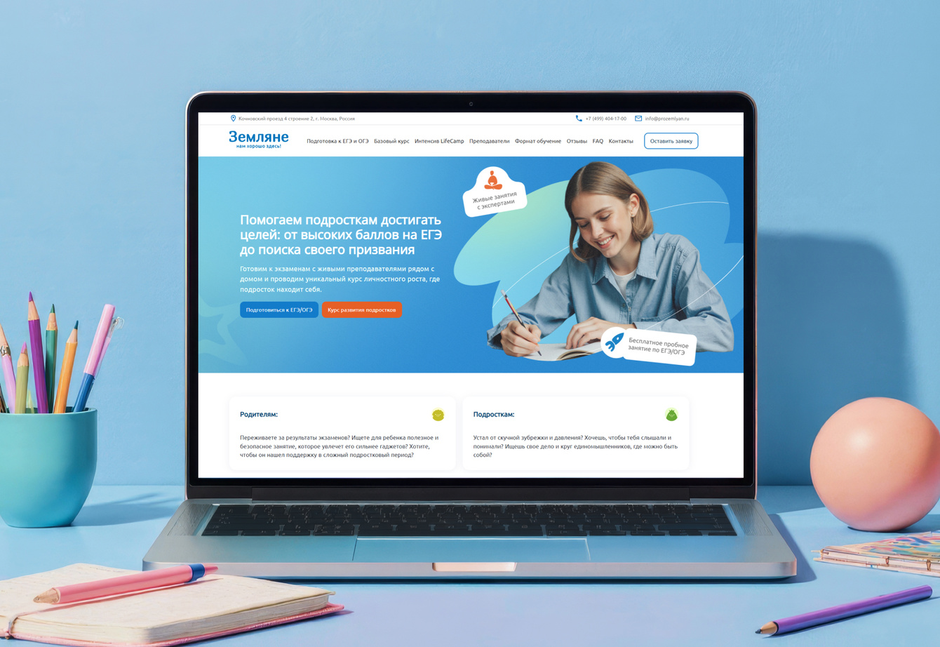 Клиент: академия «Земляне» – образовательный проект для подростков, который объединяет подготовку к ЕГЭ и ОГЭ, базовые курсы и интенсивы.