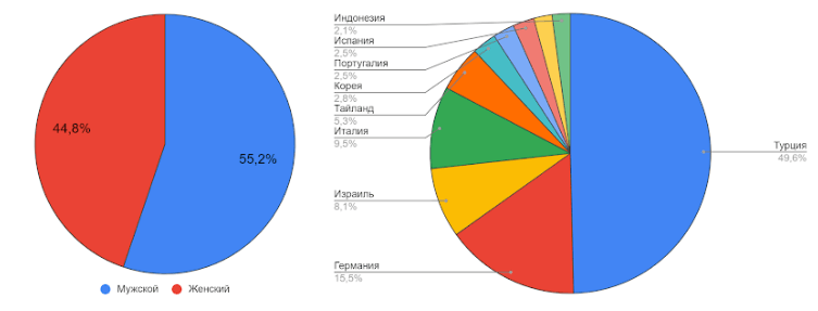 Больше всего заявок пришло из Турции (141), Германии (44), Израиля (29) и Италии (27) .