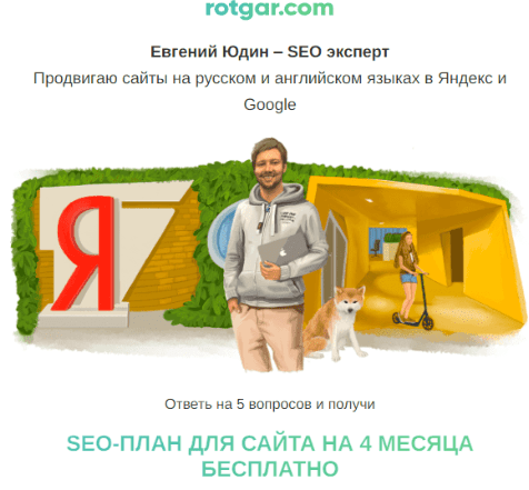 Мы решили не вести трафик на основной сайт, чтобы не снижать конверсию — он большой и содержит много лишней информации . Вместо этого мы создали мини-лендинг с главным предложением и формой . Лендинг был на двух языках: русском и английском . В качестве лид-магнита предложили бесплатный план SEO-продвижения на 4 месяца.