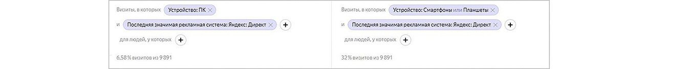 Пришедшие с рекламы и отправившие заявку через сайт: с компьютеров (слева) VS с планшетов/смартфонов (справа)