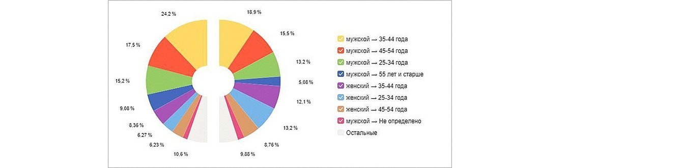 – Фокус внимания мы сосредоточили на анализе целевой аудитории (ЦА) наших рекламных кампаний. Несколько раз сегментировали её по половозрастным признакам и по типам устройств, а затем сделали выводы, о том, какие группы пользователей с большей вероятностью становятся покупателями.