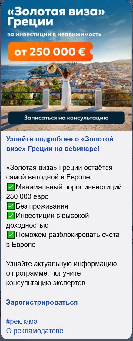 Tranio организовал вебинар о "Золотой визе" Греции. Агентству Alteasy нужно было привлечь регистрации на вебинар. Изначально использовались стандартные инструменты Яндекс Директа – поисковая реклама и РСЯ, но конверсии были единичными. Тогда мы решили протестировать рекламу в Телеграм-каналах, ожидая, что она привлечет новую целевую аудиторию.