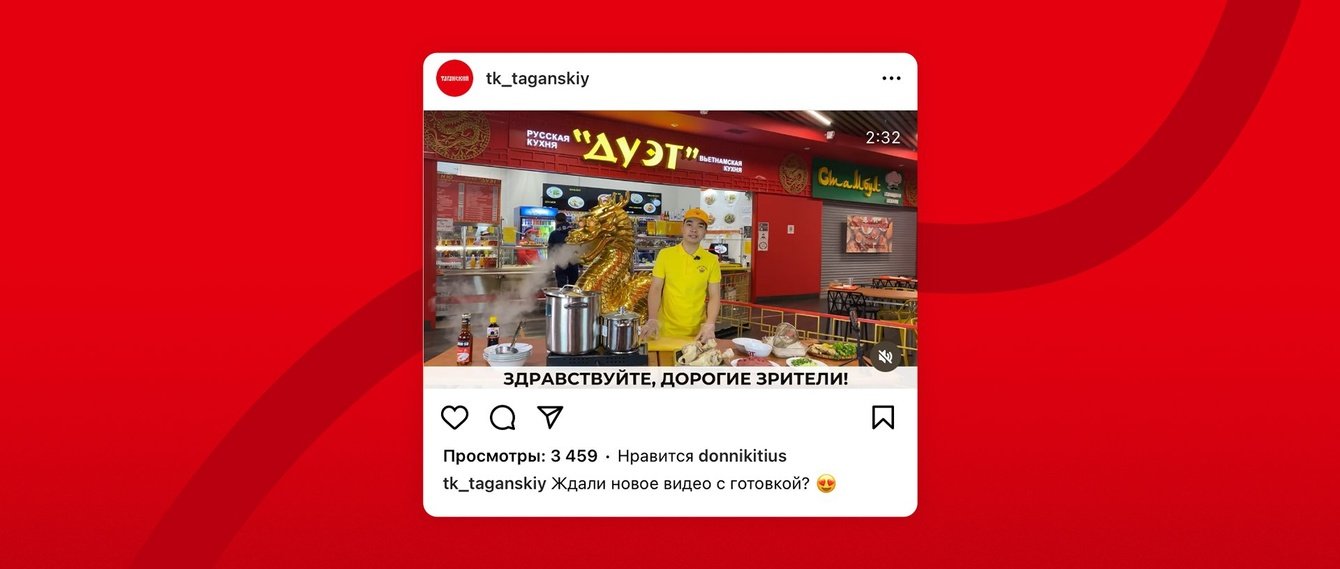 Рубрика «Рецепты от Таганского» демонстрирует съемки рецептов от поваров В рубрике «Рецепты от Таганского» мы снимали, как повара фуд-корта готовят разные блюда. Также мы показывали и сами кафе китайской, вьетнамской, русской, узбекской и афганской кухонь. Кстати, многие китайские рестораны закупают у ТК продукты и это мы тоже отражали в коммуникации.