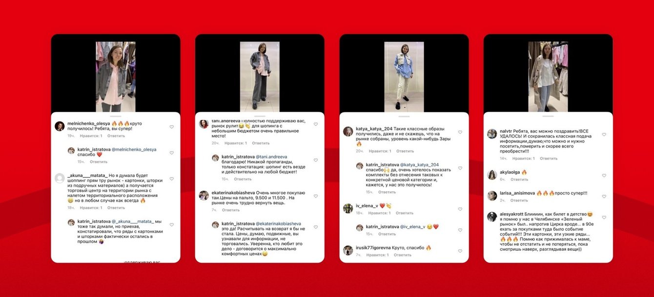 Мы выполнили все поставленные задачи и громко заявили о «Таганском Ряде», привлекли нужную аудиторию. А еще получили позитивную обратную связь от арендаторов о том, что после публикации их товаров в социальных сетях к ним стали приходить крупные оптовые покупатели. И самое главное — мы доказали, что можно изменить стереотипное представление аудитории о крупнейшем вещевом рынке города. Заказчик остался доволен, а мы вместе с ним!